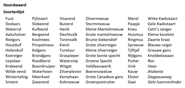 We besluiten dat het mooi is geweest, met een soortenlijst van 73 gaan we voldaan huiswaarts.